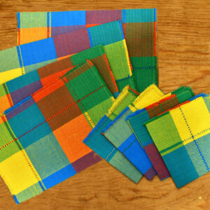 Juego de 4 manteles individuales a cuadros de colores con servilletas