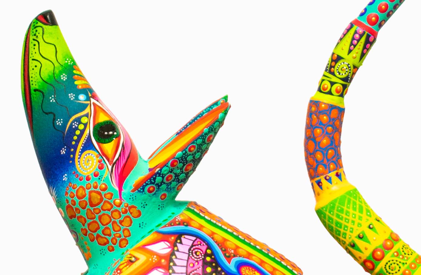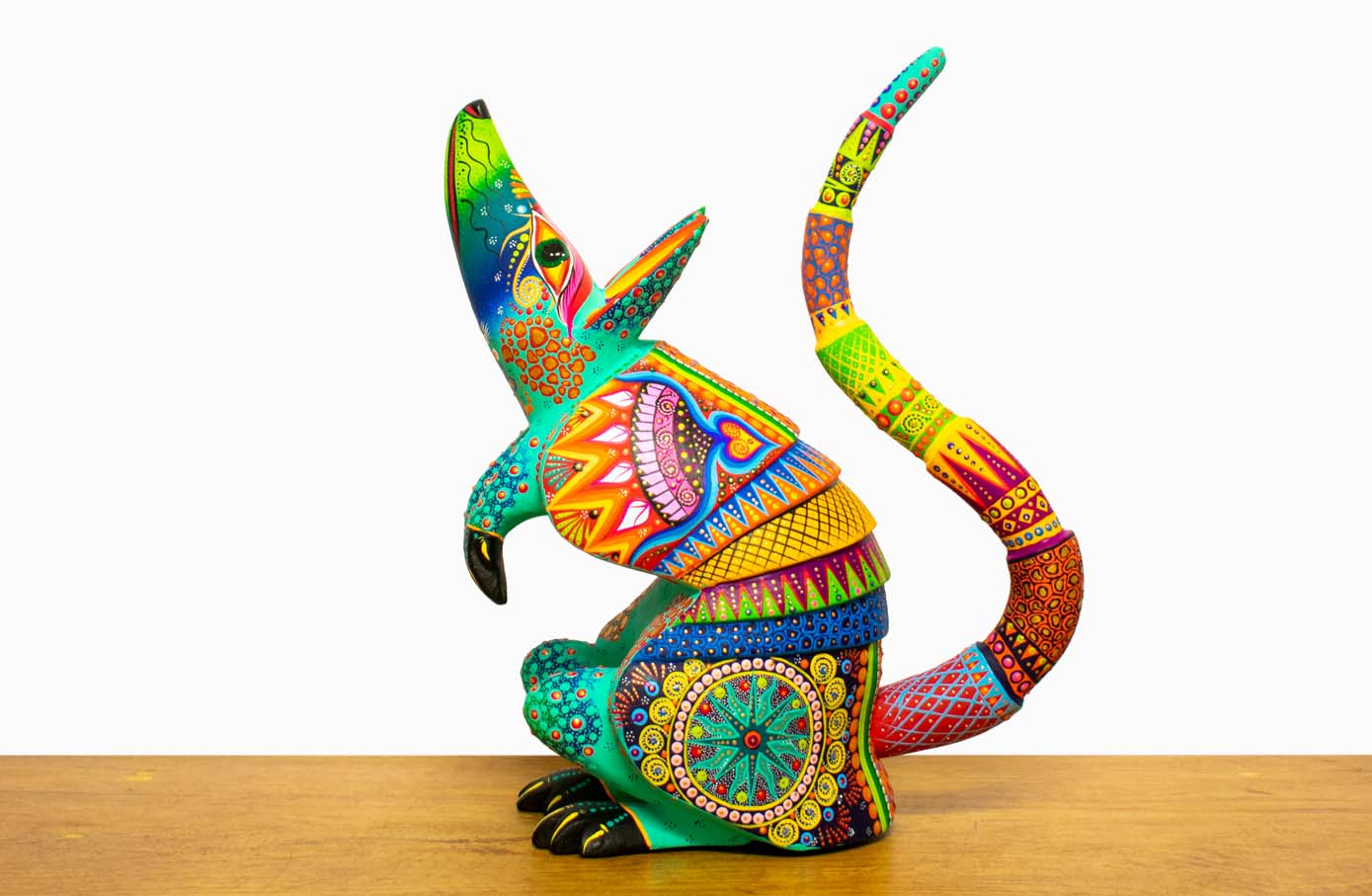 Colorido alebrije de madera, tallado y pintado a mano por artesanos mexicanos en el estado de Oaxaca.