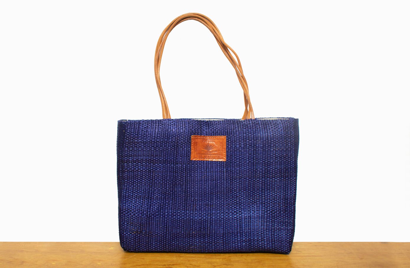 Bolsa de henequen con asas de piel