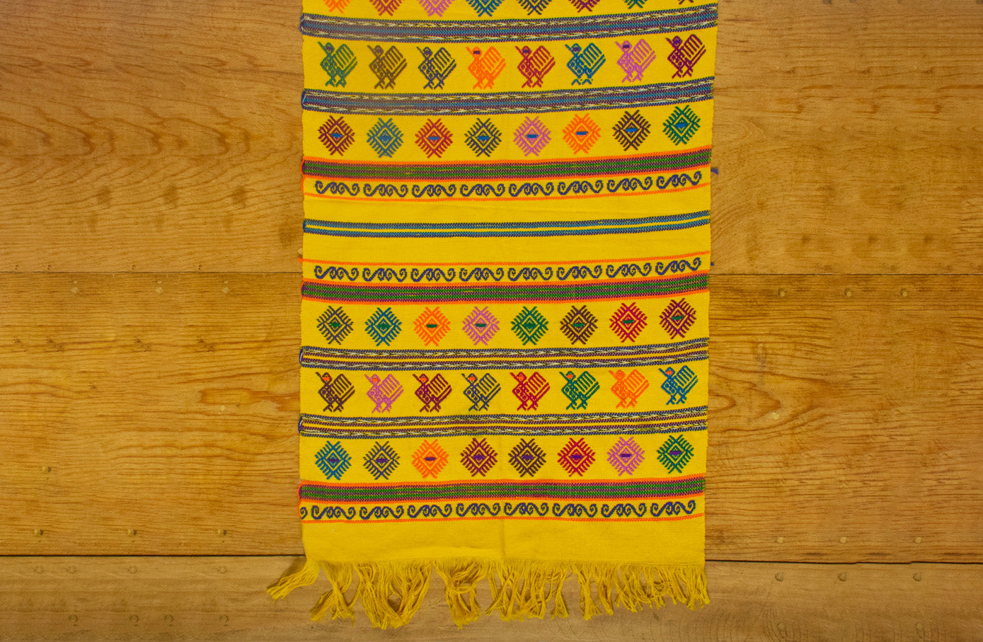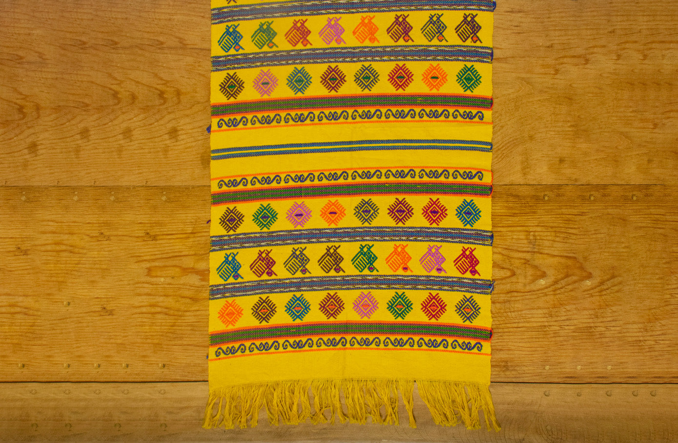 Hermoso camino de mesa bordado, hecho con algodón por artesanos mexicanos en el estado de Oaxaca.