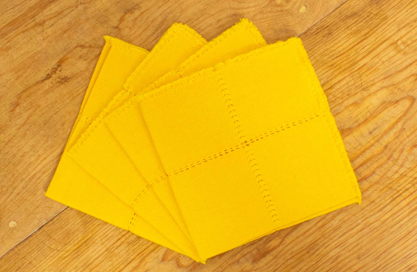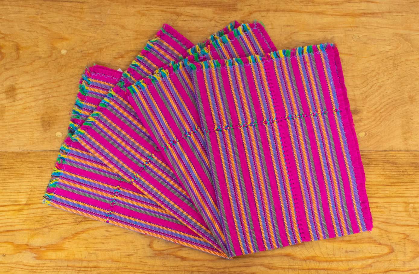 Juego de 4 manteles individuales de algodón con sus respectivas servilletas, hechos por artesanos mexicanos en el estado de Michoacán.