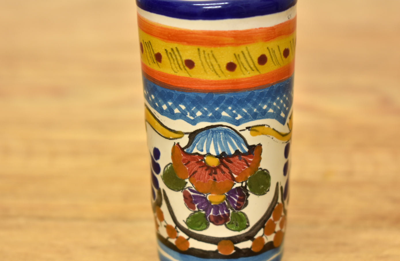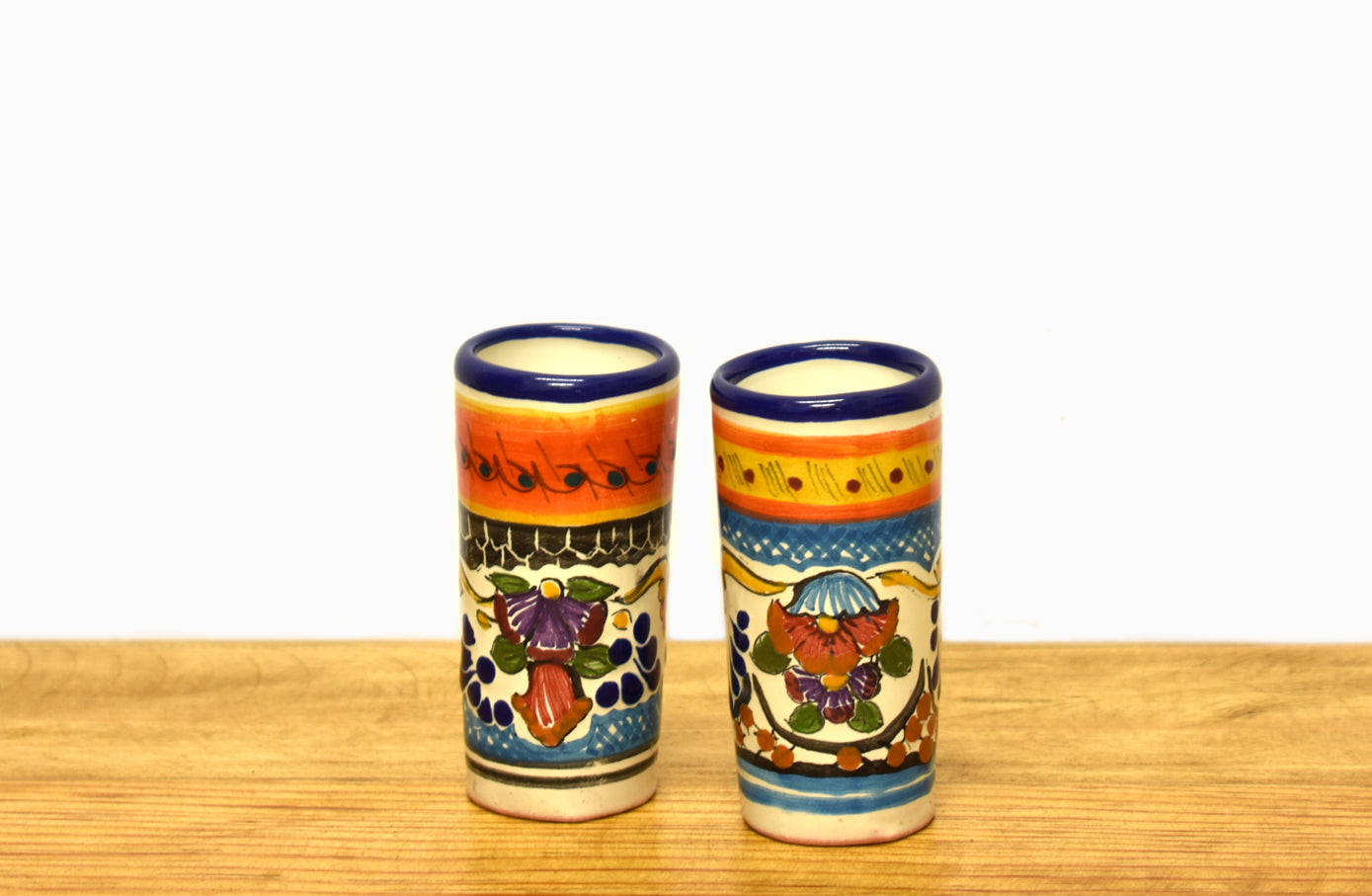Juego de tequileros de de Talavera fina decorados a mano por artesanos en el estado de Puebla.