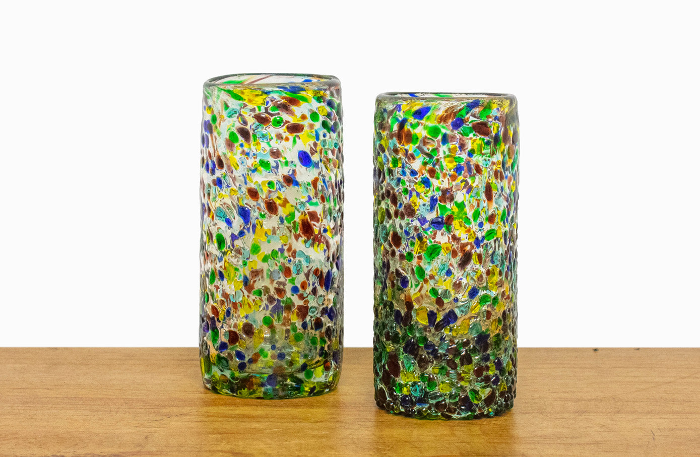 Juego de 2 tequileros granizados de vidrio soplado, hecho a mano por artesanos mexicanos en el estado de Jalisco.