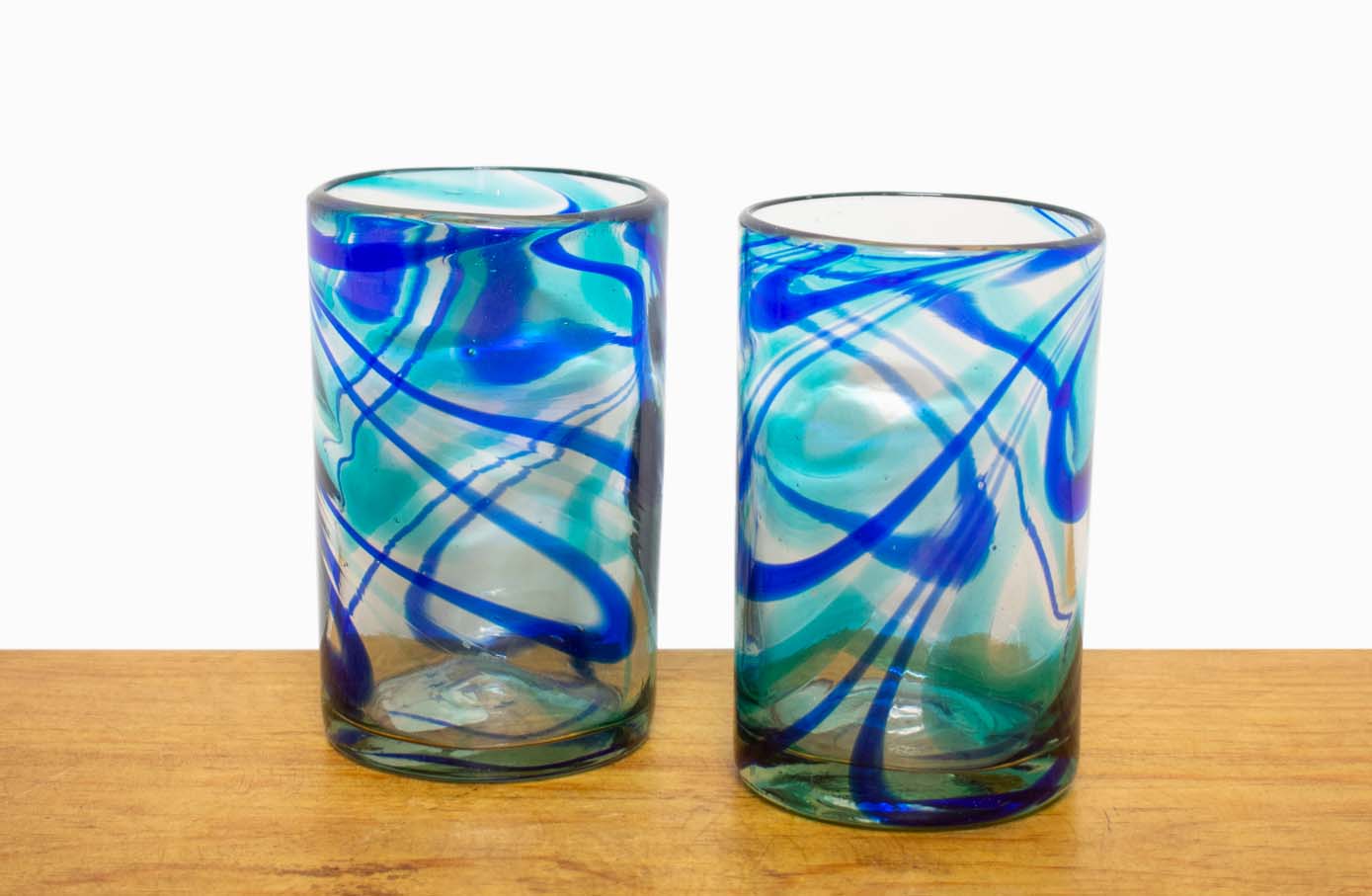 Juego de 2 vasos 2 hilos, hechos en vidrio soplado por artesanos mexicanos en el estado de Jalisco.