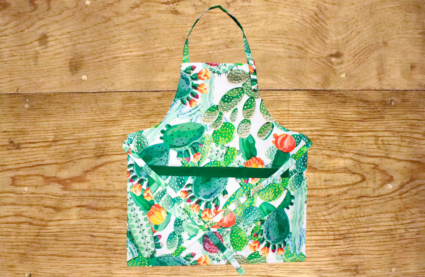 Tradicional mandil decorado con nopales, diseñado por artistas mexicanos en la CDMX:.